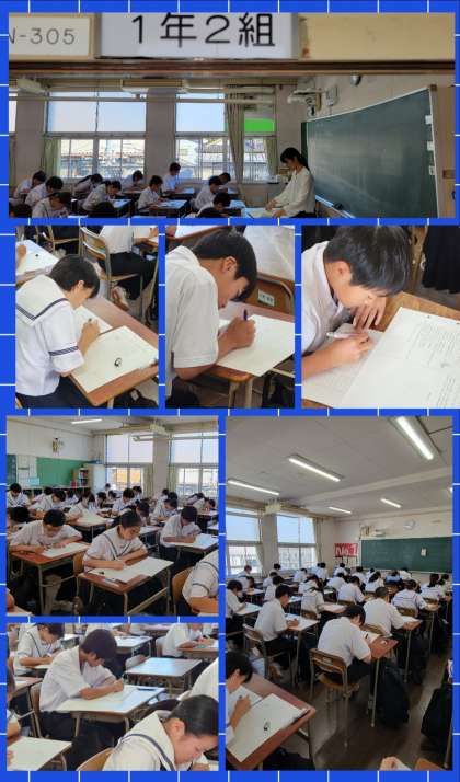 1.2年生の教室、生徒たちは目の前のテスト問題に集中しています。