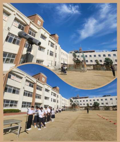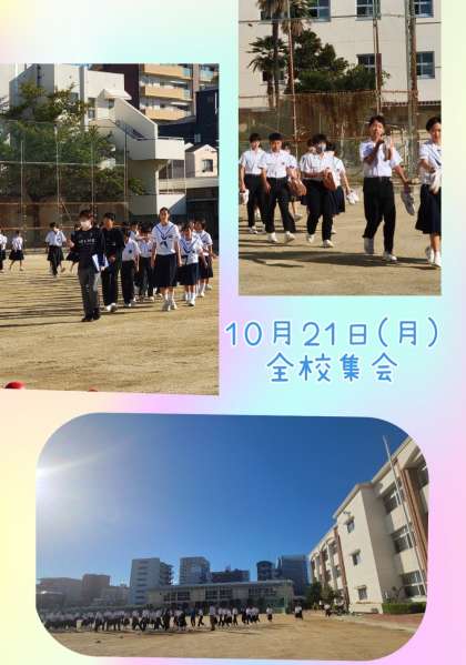 快晴、爽やかな秋の空気のなか全校集会を行いました。