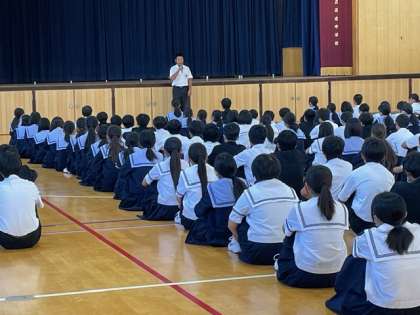 1年 学年集会 公開日 2024/11/06 更新日 2024/11/06 1年 1年生、朝の学年集会です。 委員長が司会・進行しています。 今日は各種委員会から、今月の目標が発表されました。 いいね(0)