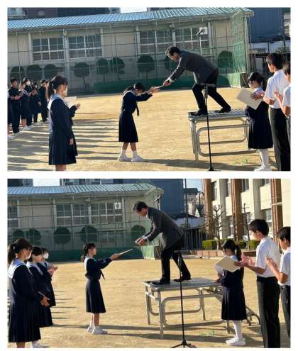 体育大会での応援旗についても、その学級デザインを手がけた生徒はじめその学級に対して『ベストデザイン賞』として表彰しました。
