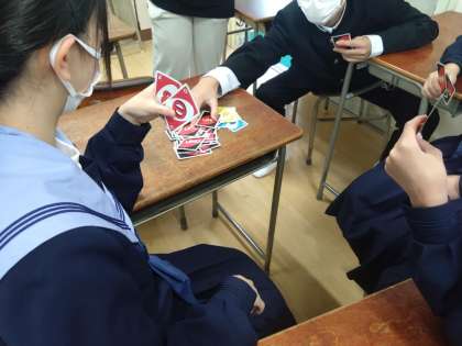 今日も、1年生と3年生合わせて10人ほどが参加し、カードゲームを通して英会話を学びました。