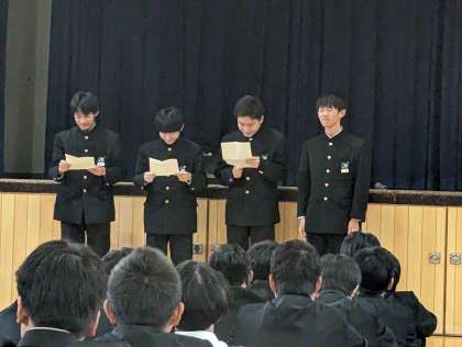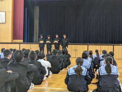 先日は高中のみんなの健康を願って、3年保健委員四人が元気に1月の保健目標を発表してくれました。ありがとうございました。