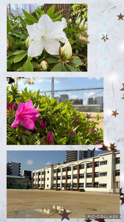 桜が散ったあとのツツジ、これから校舎前にサツキが咲き乱れます。このように校内では一年中、さまざまなお花が咲き、季節感を楽しめます。
