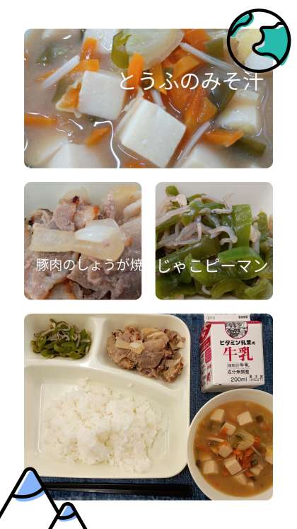 今日の給食(4月22日) 公開日 2025/04/22 更新日 2025/04/22 お知らせ ごはん、牛乳、豚肉のしょうが焼き、とうふのみそ汁、じゃこピーマン 今日の大おかずはみそ汁です。 給食は他校で作られたものが運ばれてきますが、保温の効く食缶のため食べる頃も熱々です。 しょうが焼きは、しょうがの風味はマイルドで食べやすいです。 いいね(0)