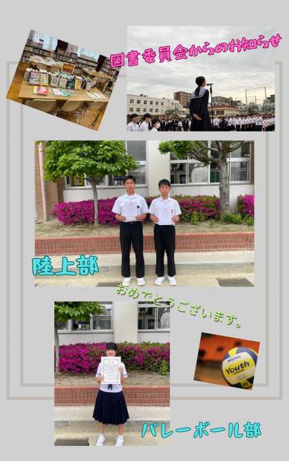 ゴールデンウィーク、後半四連休があります。図書委員会からも連絡がありました。積極的に本を読みましょう。