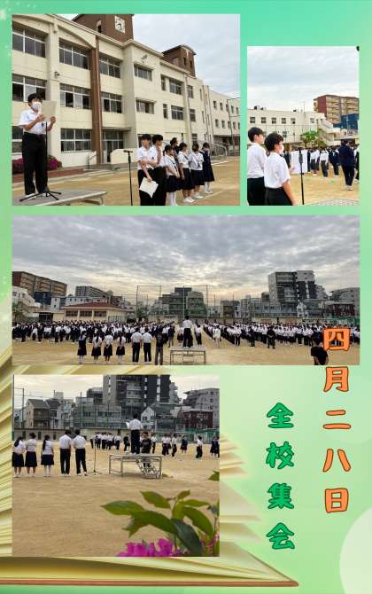 2、4月22日は創立記念日でした。創立から80年近くが経ちました。多くの保護者や地域の方々などが学んできた場所、歴史と伝統の上に立って、次の新しい高倉中学校を作っていく在校生の皆さんに期待します。頑張ってください。