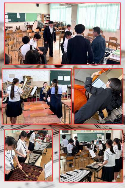 吹奏楽では、上級生がパートリーダーとしてその役割を果たしています。安定した組織力で技術力が向上します。