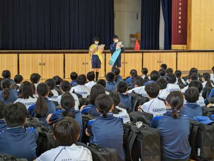 出発式は、恒例のルール励行隊の漫才でスタートし、生徒代表者からルールを守り安全に過ごすことについて宣言がありました。