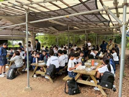 少し雨がぱらついていますが、屋根付きの外会場でランチタイムです!