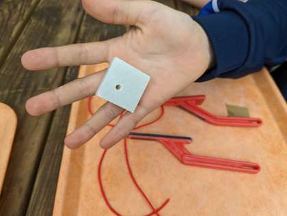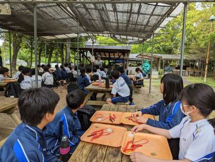 施設の方に教えていただき、勾玉作り体験が始まりました。