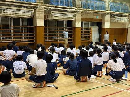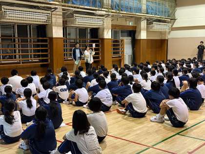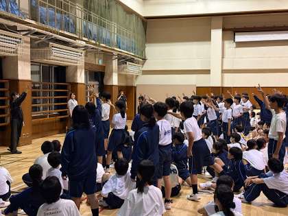 夜のつどい第一部がついに始まりました。クラススタンツに行くと思いきや、先生から『ちょっとまったー』がかかり、まさかの先生陣によるアイスブレイク。先生オールキャストによる歌のサプライズも。大盛り上がりで緊張もほぐれ、今からクラススタンツの始まりです!