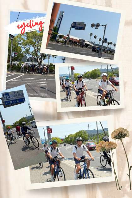 サイクリングが始まりました。 ヘルメットを被り安全対策を整えました。 これからタタラ大橋を渡ります。
