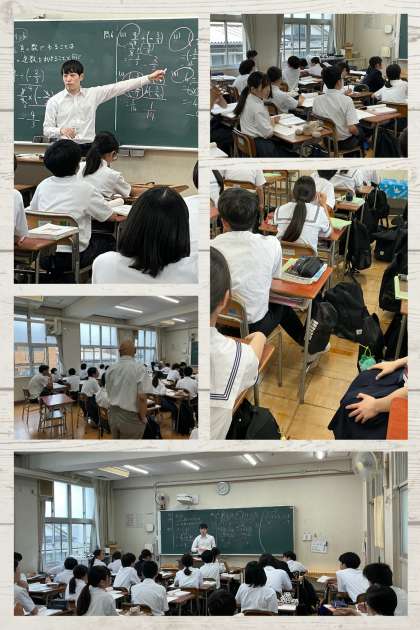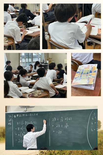 中学1年生の数学では、教育実習生指導による、負の数を含む分数の割り算について学んでいました。