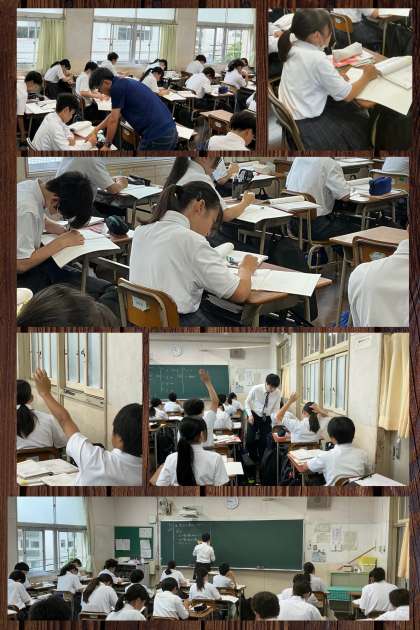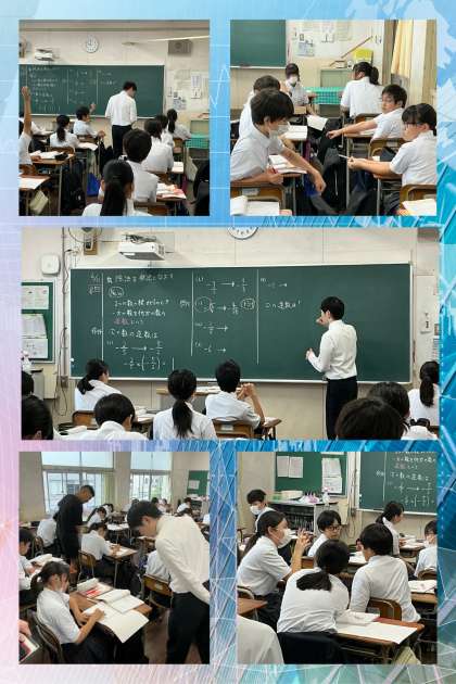 研究授業 一年生数学 公開日 2025/06/11 更新日 2025/06/11 お知らせ 一年生数学では『逆数』について学んでいます。 二つの数の積が『1』のとき、一方の数を他方の数の『逆数』という。 決して難しくありません。しかし符号にマイナスが付くとよく間違えます。 「まずは符号を決めて」と繰り返される言葉で目の前の問題に取り組む一年生です。 こんな問題も出ました! 0(ゼロ)の逆数は? いいね(0)