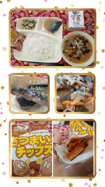 今日の給食(6月13日) 公開日 2025/06/13 更新日 2025/06/13 給食 ごはん、牛乳、さごしのおろしじょうゆかけ、みそ汁、野菜いため、おさつチップス 「さごし」は、さわらの幼魚です。 出世魚のため、サイズによって呼び方が変わります。 今日の献立では、さごしをグリルで焼いた後、醤油味の大根おろしのタレをかけます。 淡白な味でタレが良く合います! いいね(0)