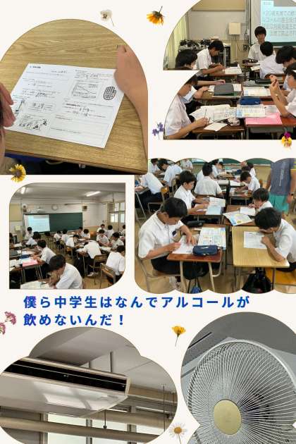 二年生の保健授業では『飲酒と健康』について学んでいました。