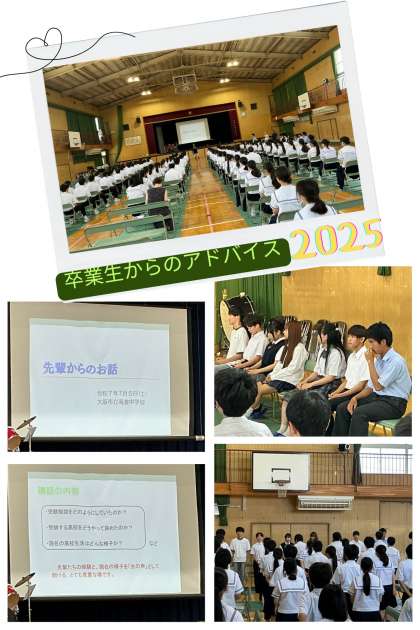 毎年恒例になっている卒業生からの夏休み以降の学校や家庭学習に役立つアドバイスがたくさんありました。
