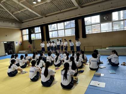 試合後の振り返りでは、各チームで良かった点や改善点を話し合い、発表を行いました。発表を通して、お互いのチームの良さや工夫に気づくことができました。