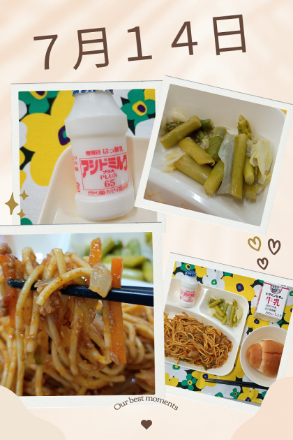 今日の給食(7月14日) 公開日 2025/07/14 更新日 2025/07/14 給食 ミニコッペパン、牛乳、カレースパゲティ、グリーンアスパラガスとキャベツのサラダ、発酵乳 焼きそばのように見えますが、カレー味のパスタです。 麺は柔らかいですが延びているわけではなくもちもちしています。 そして今日はデザートに発酵乳付きです。 じゃんけんに勝てた幸運な人は二本飲めたかもしれません。 いいね(0)