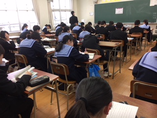 今日は学年末テスト2日目です。 テスト前に最後の確認をしている様子です。