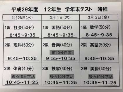 明日は 1限 数学 2限 英語 3限 美術 です。