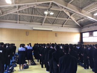 放課後に、3年生を送る会の歌練習を格技室で練習しました。