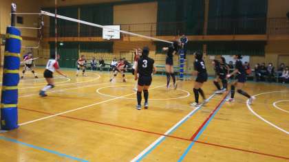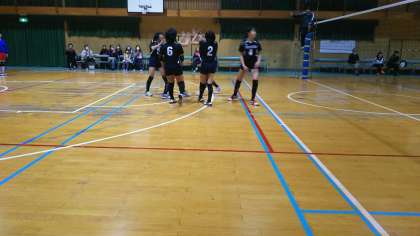 第3試合は第1、2セットを10点、9点でおさえて大正中央中学校に勝ちました。優勝をかけて第5試合美津島中学校と対戦です。