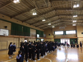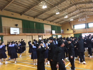 学年のお楽しみ会の様子です。 学校や先生にまつわるクイズなどを体育館で行いました。