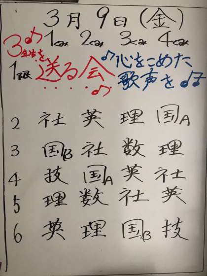 2年生 明日の予定