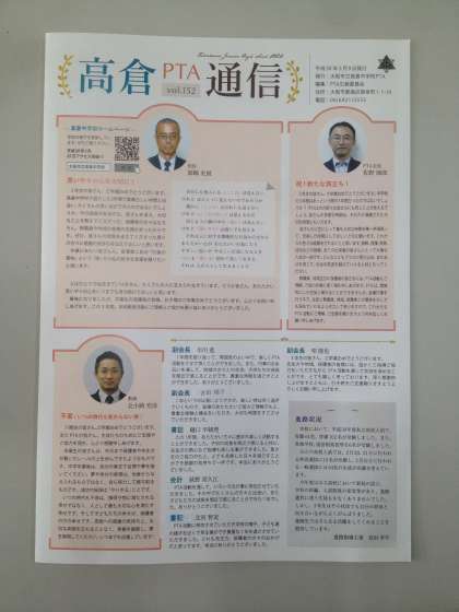 高倉PTA通信 vol.152号の訂正 公開日 2018/03/12 更新日 2018/03/12 お知らせ 金曜日に配布しました、高倉PTA通信 vol.152号に誤りがありました。 PTA役員の役職ですが、「書記」が誤りで、正しくは「会計監査」です(下部分の中央)。 申し訳ありませんでした。 いいね(0)