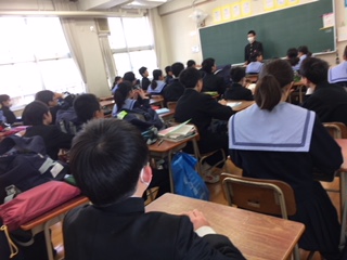 朝学活の様子です。 明日は、卒業式予行が行われます。 クラスでは、明日の動きについて連絡がありました。