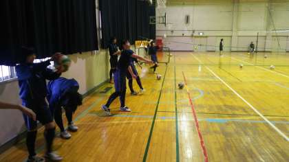 今日は2Bでは一年生大会が行われています。本校は一年生がいてないため今日も他の地区のチームと練習試合です。守口市立梶中学校で午前はしていました。小学校バレー経験者中心に、175を超える長身選手もいる良いチームです。今日はキャプテン抜きでいつもと違うフォーメーションで試合に挑んでます。3セット先にとられるものの後半はセットを取り返しました。午後からは高倉中学校に戻り、フェブラリー杯一位トーナメントベスト4の玉津中学校とです。頑張ります!