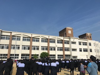 朝、グラウンドにて全校集会及び認証式が行われました。