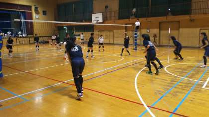 今日は明日の2ブロック大会にそなえて春季総体出場決定してる4Bの美津島中学校と同じく明日大会の1Bの梅香中学校が練習試合に来ています。両チームともレシーブに粘りのあるチームですが美津島戦25対4、梅香戦25対11、25対18とサーブと、スパイクでしっかり攻めています。1年生もしっかり声を出して応援してます。