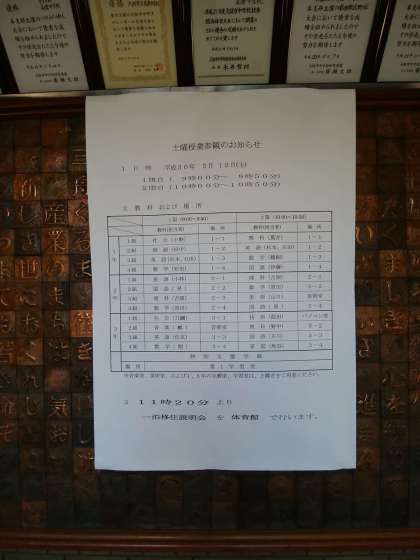 本日、土曜授業参観です。 その後、1年生の一泊移住保護者説明会があります。