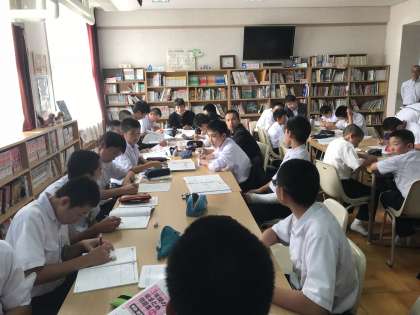 図書室では、元気アップの放課後学習が行われています。