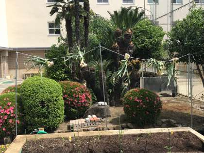 ニンニクの移動です!夜から雨の予報の為、第二学習室に陰干ししています!