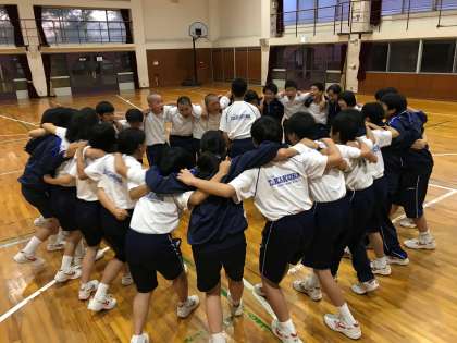 円陣を組んで気合いをいれました!