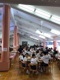 おはようございます!朝は6時に起き、荷物や布団の整理をし、朝の集いを行ってから朝食です!とても元気です!この後は野外炊飯です!