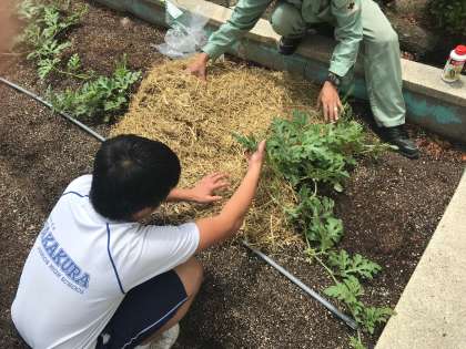 管理作業員の方と一緒にすいかの藁をしきました!