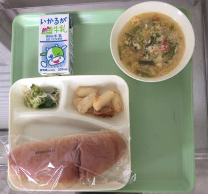 6月11日(月)給食献立 公開日 2018/06/11 更新日 2018/06/11 お知らせ いかてんぷら、トマトと卵の中華スープ、チンゲンサイともやしのピリ辛あえ、こくとうパン、牛乳となっております。 いいね(0)
