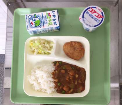 6月12日(火)給食献立 公開日 2018/06/12 更新日 2018/06/12 お知らせ チキンカレーライス、一口トンカツ、キャベツとコーンのサラダ、ヨーグルト、ごはん、牛乳となっております。 いいね(0)