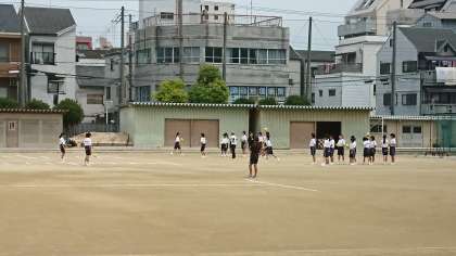 1年生の体育はスポーツテストです。ハンドボール投げと50m走をしています。