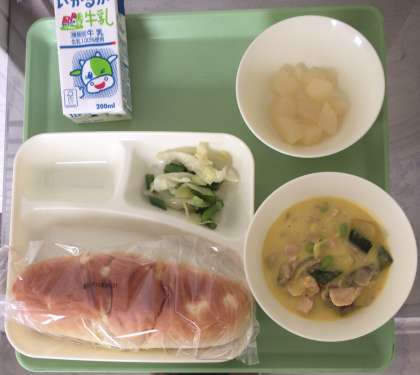 6月21日(木)給食献立 公開日 2018/06/21 更新日 2018/06/21 お知らせ かぼちゃのクリームシチュー、キャベツと三度豆のサラダ、和なし(缶)、おさつパン、牛乳となっております。 いいね(0)