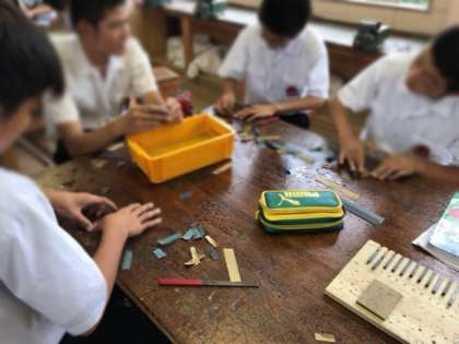技術の授業の様子です。 今はキーホルダーを作成しているようです!