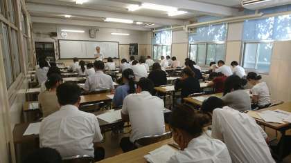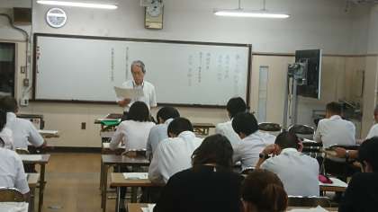 研究授業に引き続き、教育センター教育指導員の芝田先生による模擬授業を先生方が受けました。