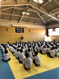 1学期最期の学年集会です。1学期の反省や良かった点、2学期に向けての過ごし方や、意識の持ち方についての話がありました。先生は生徒のために熱弁してくれています。生徒も真剣に聞いています。素晴らしいですね。