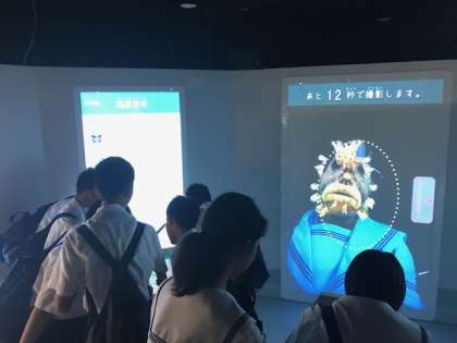 顔博にあったスクリーンで遊んでいる様子です!