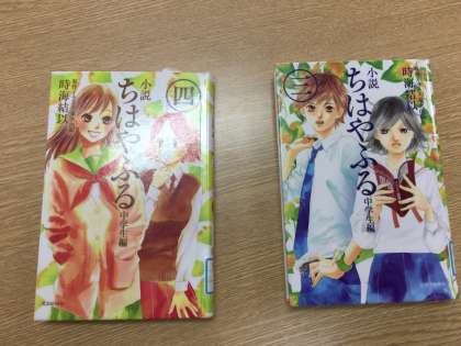 また、「ちはやふる」の小説も置いていますので、小説であれば貸出はできます。