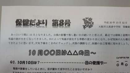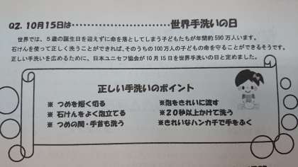 保健だより第8号 公開日 2018/10/15 更新日 2018/10/15 お知らせ 先日、保健だより第8号を配布しました。 今月は○○の日特集です。 本日15日は世界手洗いの日です。 手洗いは風邪予防に欠かせない習慣ですね。 いいね(0)